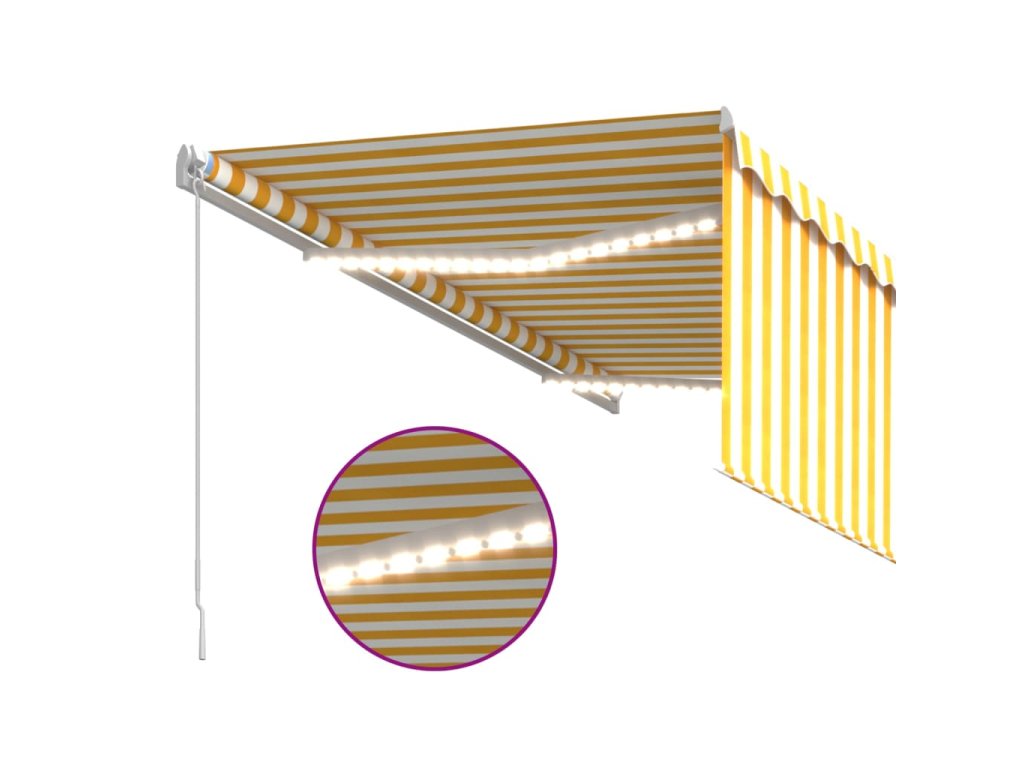 Ručně zatahovací markýza s roletou a LED 3 x 2,5 m žlutobílá
