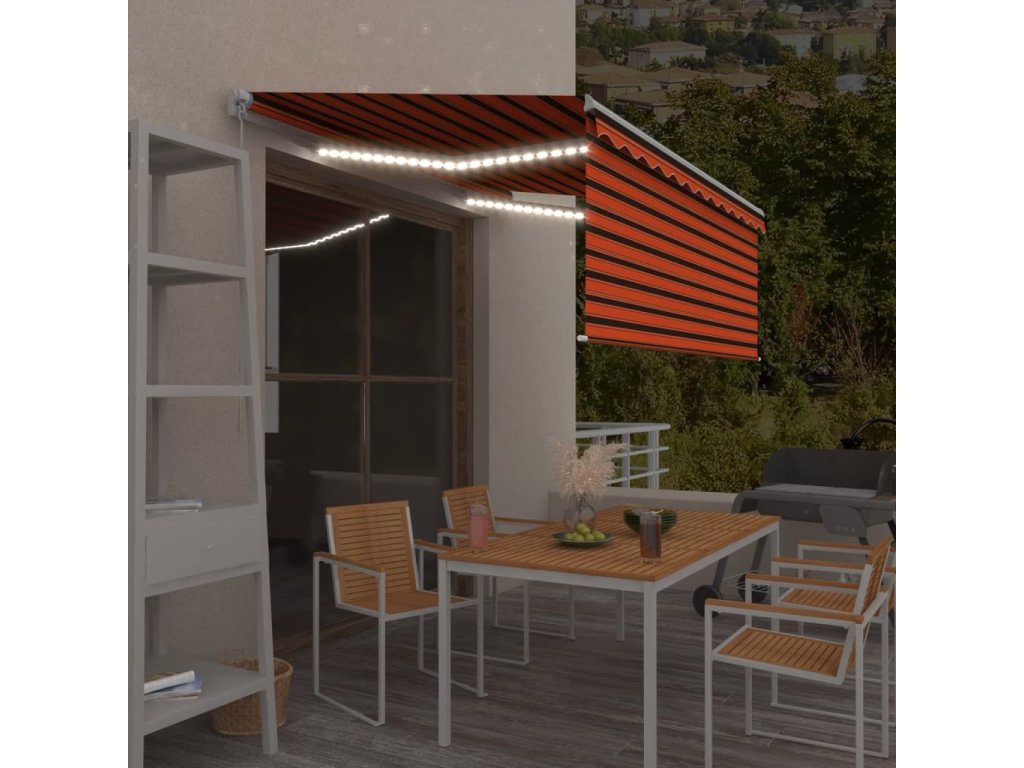 Ručně zatahovací markýza s roletou a LED 3x2,5 m oranžovo-hnědá