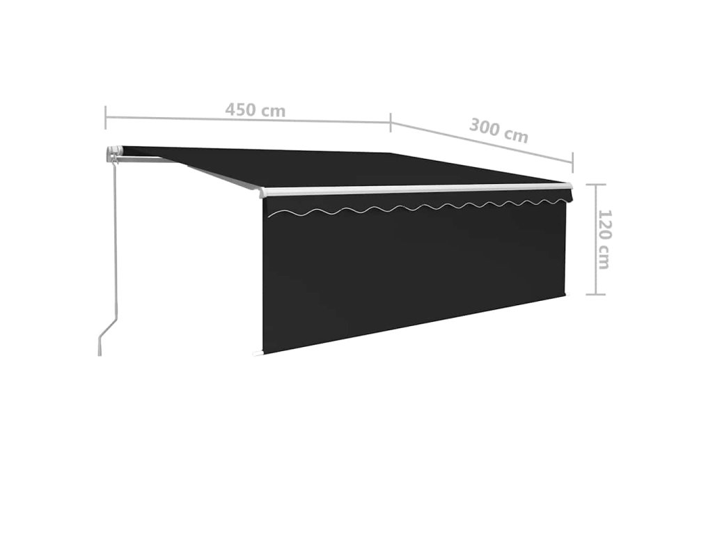 Ručně zatahovací markýza s roletou a LED 4,5 x 3 m antracitová