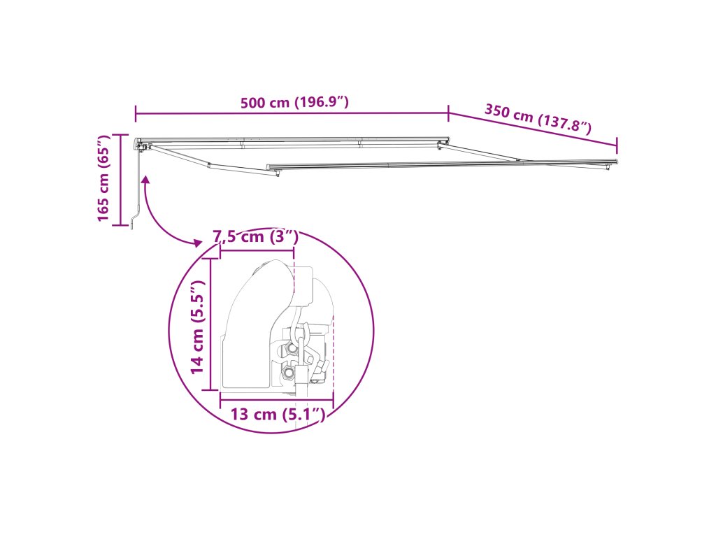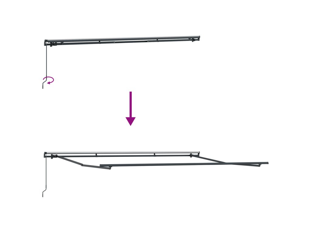 - Manuální nastavení: S jednoduchým manuálním mechanismem si můžete snadno nastavit množství stínu, které potřebujete. Tato funkce zajišťuje flexibilní používání a pohodlnou ochranu v různých povětrnostních podmínkách.