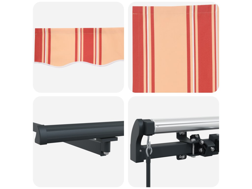 - Robustní materiály: Vyrobená z kvalitního polyesteru a odolné oceli, markýza skvěle odolává počasí a chrání před UV zářením, vodou i blednutím, což zajišťuje dlouhou životnost. Uživatelé mohou očekávat spolehlivé a vizuálně atraktivní řešení pro venkovní užívání po celou sezónu.