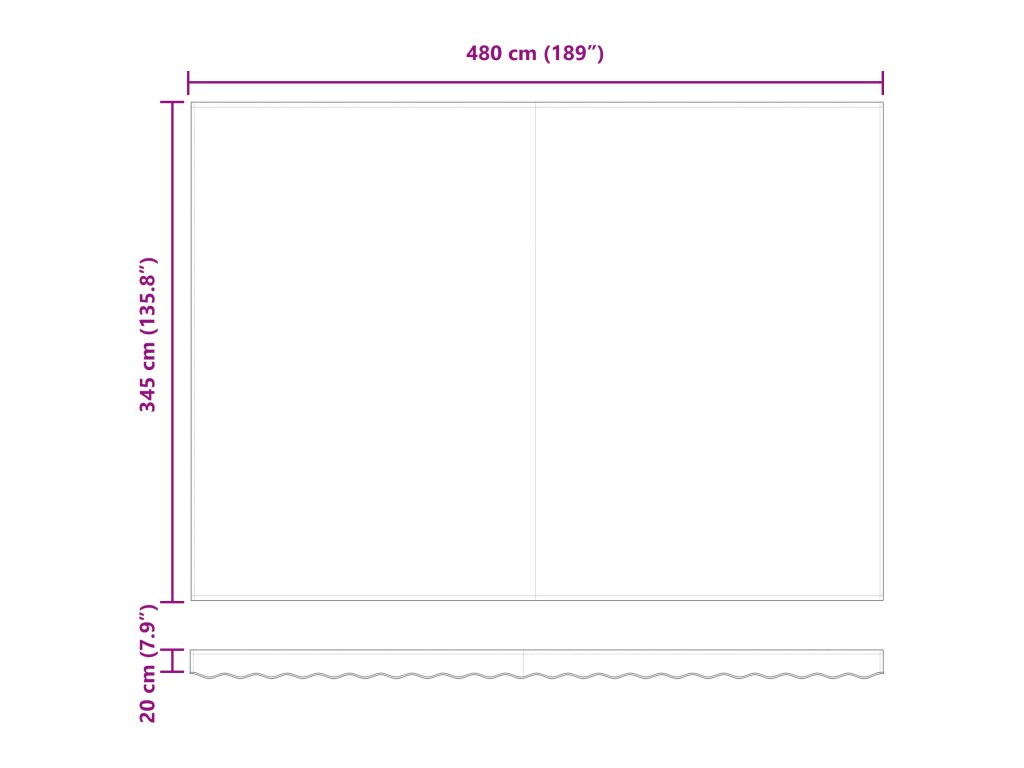 - Celkové rozměry: 500 x 350 x 165 cm (D x Š x V)
