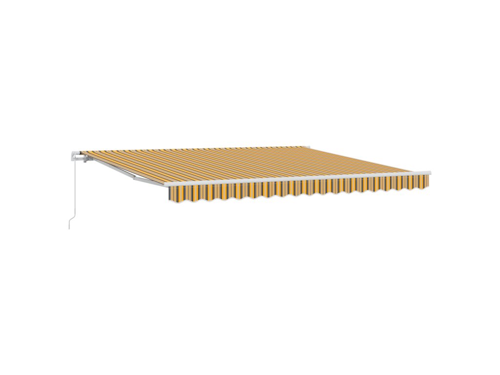 Tahle zasouvací venkovní markýza v oranžové a žluté barvě je skvělým spojením funkce a stylu, ideální pro moderní venkovní prostory. Díky trendovému designu a odvážným pruhům okamžitě rozjasní vaši terasu nebo balkon a vytvoří příjemný stín. Pokud chcete do své zahrady nebo na terasu přidat kousek barvy a šmrnc, tohle je perfektní volba.