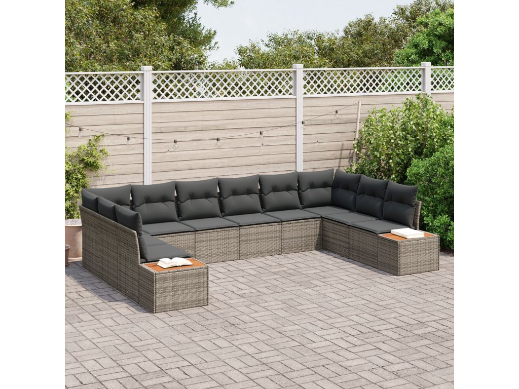 Sada zahradních pohovek s polštářem 10 pcs Šedá Poly ratan