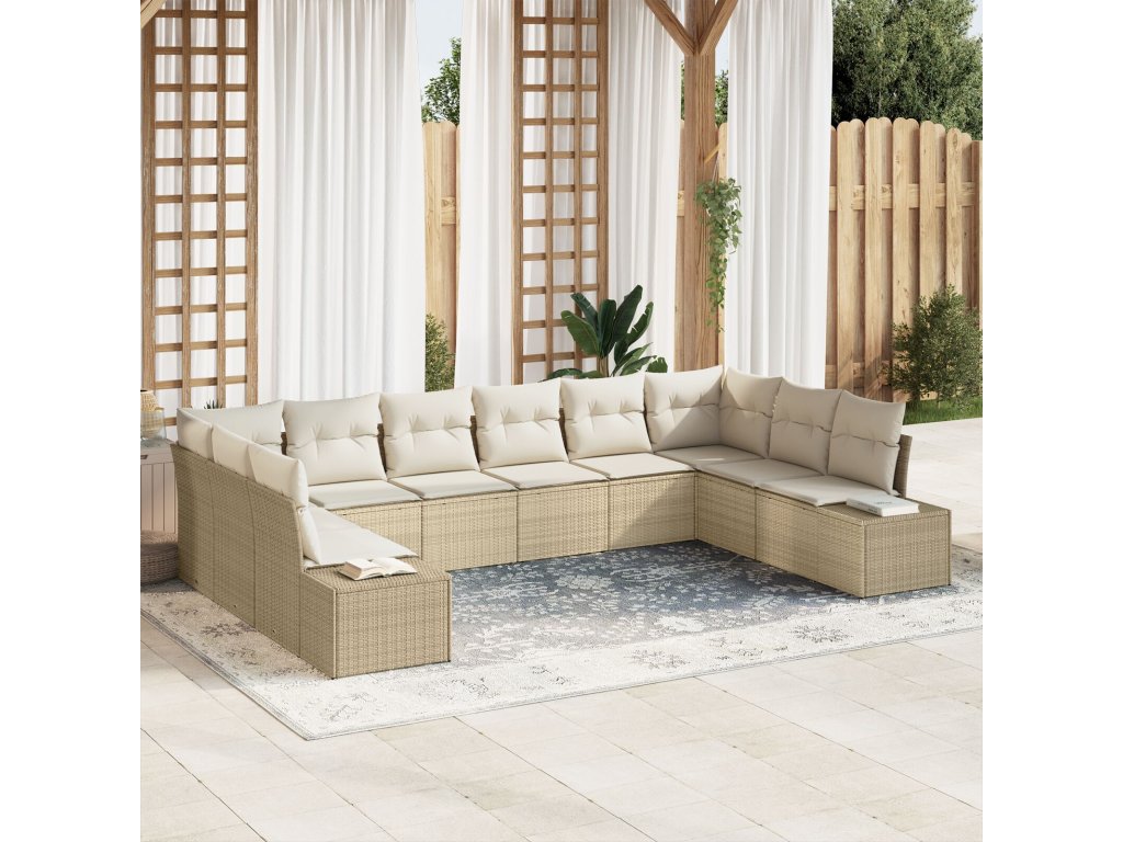 Sada zahradních pohovek s polštářem 10 pcs Béžová polyratan