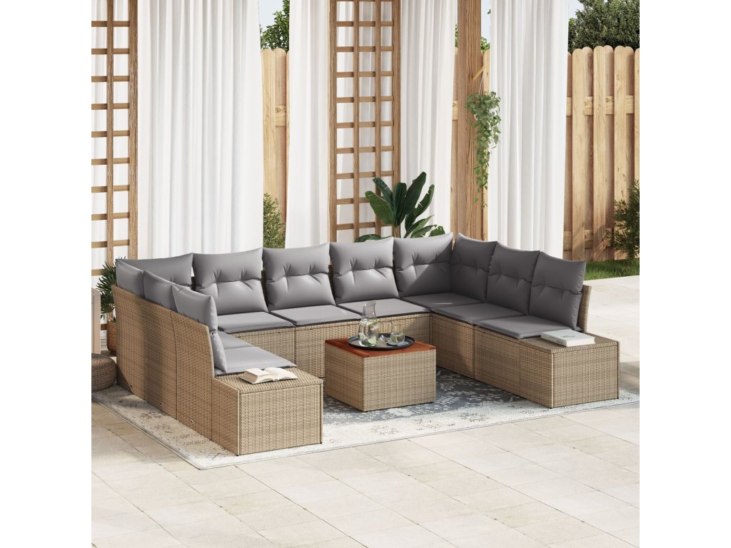 Sada zahradních pohovek s polštářem 10 pcs Béžová Poly ratan