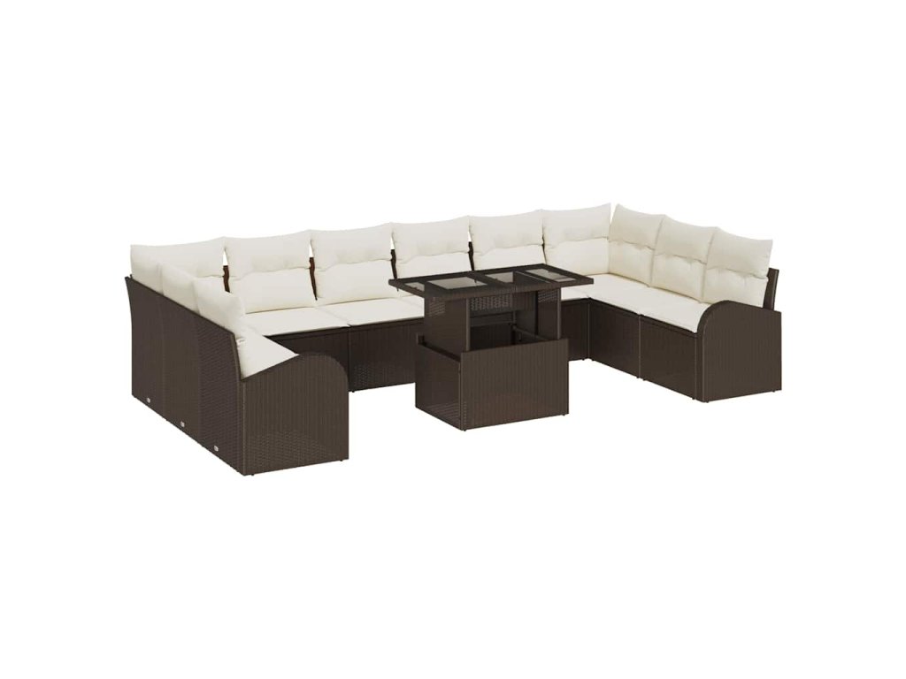 Sada zahradních pohovek s polštářem 11 pcs Hnědá Poly ratan