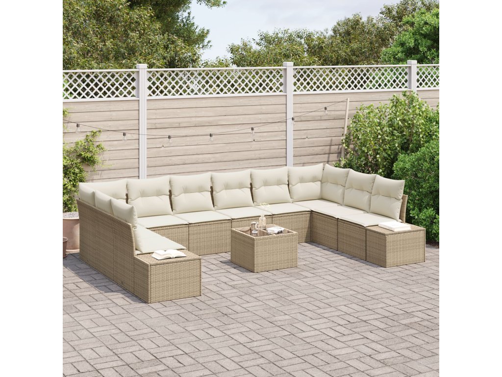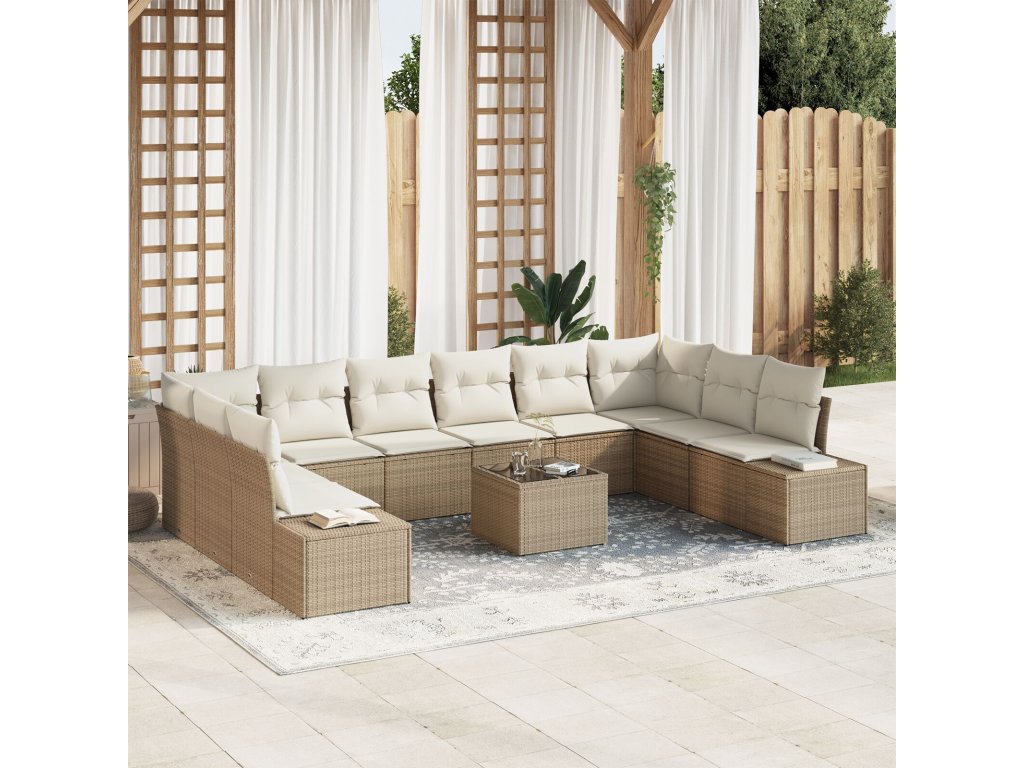 Sada zahradních pohovek s polštářem 11 pcs Béžová polyratan