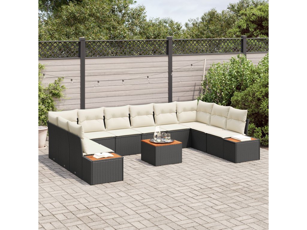 Sada zahradních pohovek s polštářem 11 pcs Černá Poly ratan
