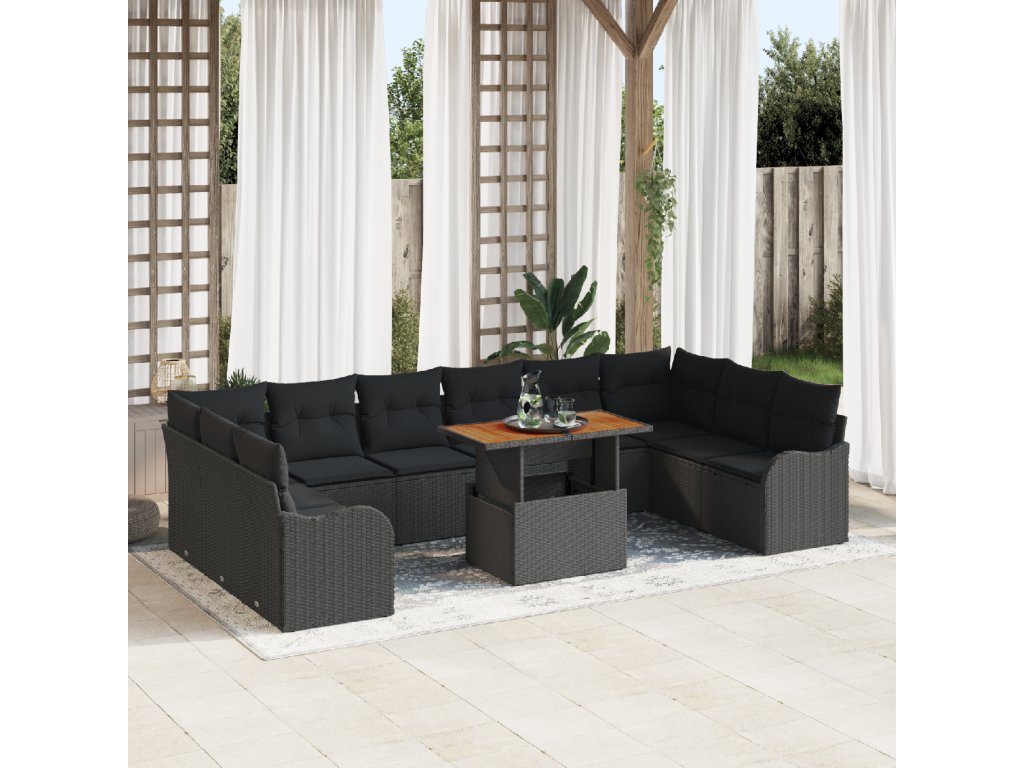 Sada zahradních pohovek s polštářem 11 pcs Černá