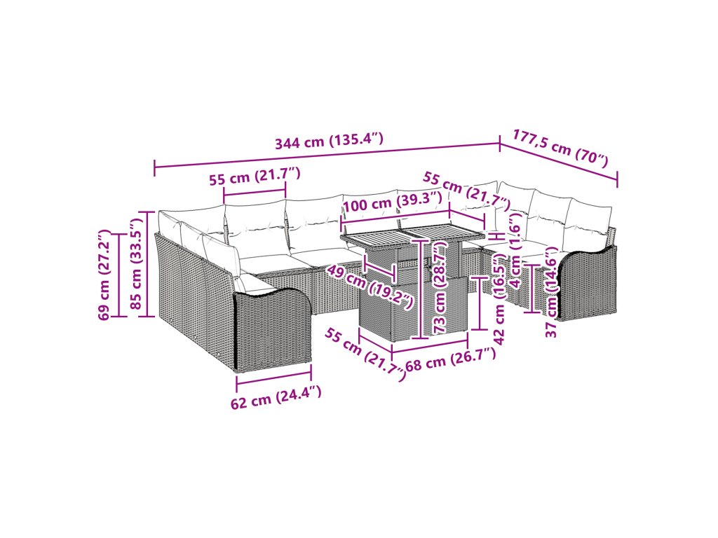 Sestava pohovek kombinuje moderní design s top funkcionalitou. Je navržená tak, aby oživila jakoukoli venkovní plochu svým stylovým vzhledem. Obsahuje pohovky s područkami, rohová a středová sedadla, vše s praktickým úložným prostorem a pohodlnými polštáři pro maximální relaxaci. Tkaná textura a čisté linie dodávají jedinečný nádech, ideální pro moderní terasy a zahrady.