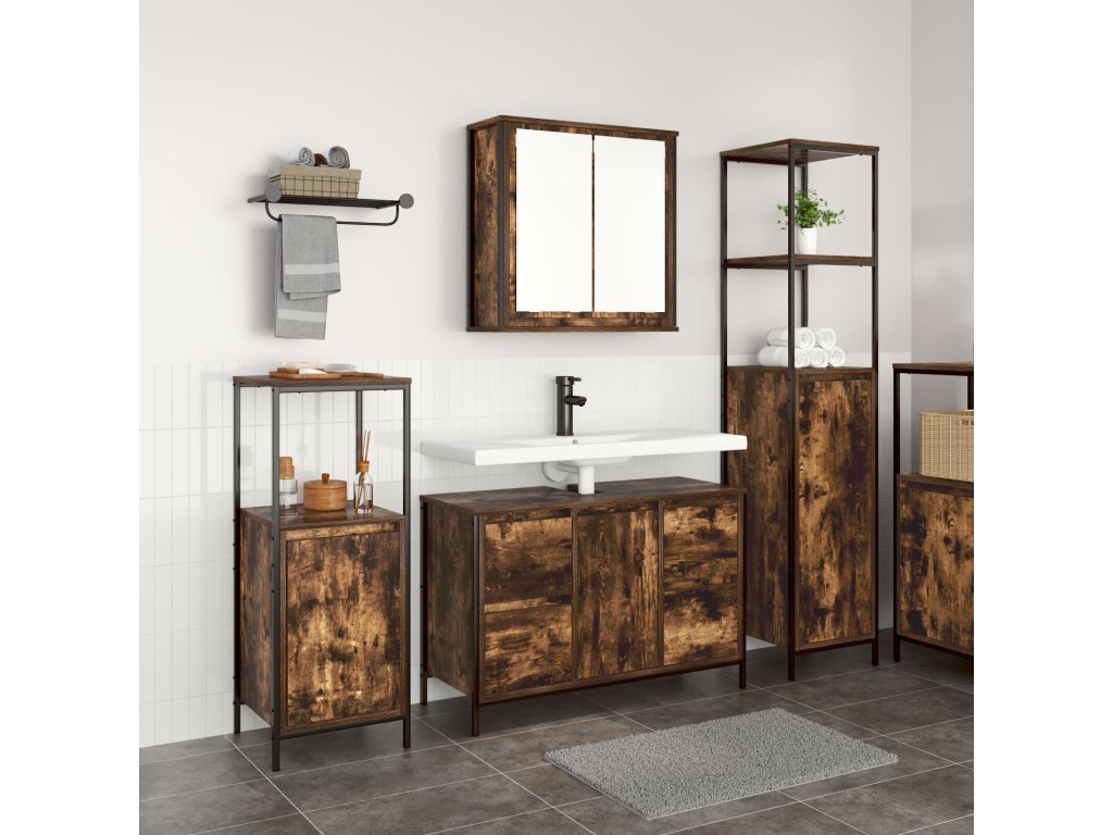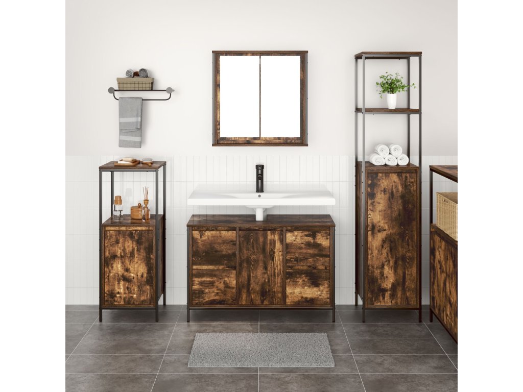 Sada koupelnového nábytku se zásuvkou 3 pcs Uzený dub a černá