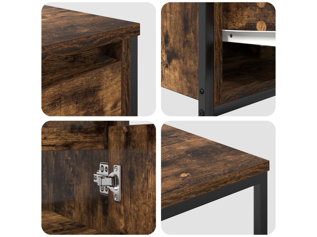 - Odolná konstrukce: Vyrobeno z inženýrského dřeva s robustním kovovým rámem, tahle skříňka je navržená tak, aby vydržela, unese až 60 kg pro všechny tvoje potřeby.