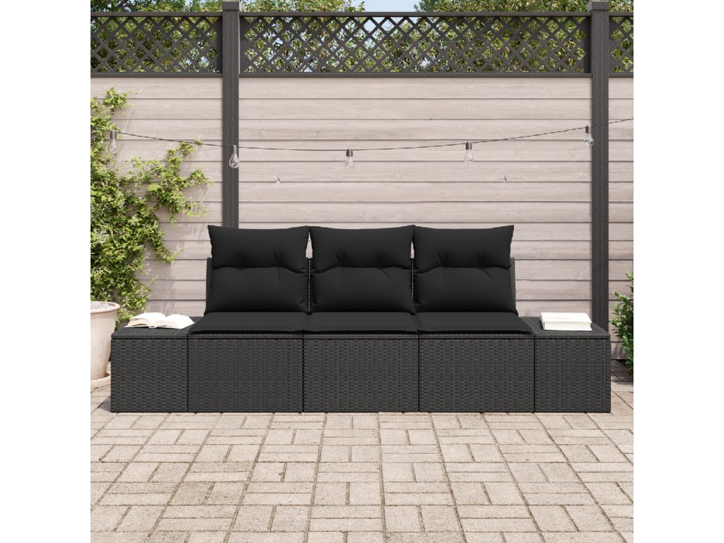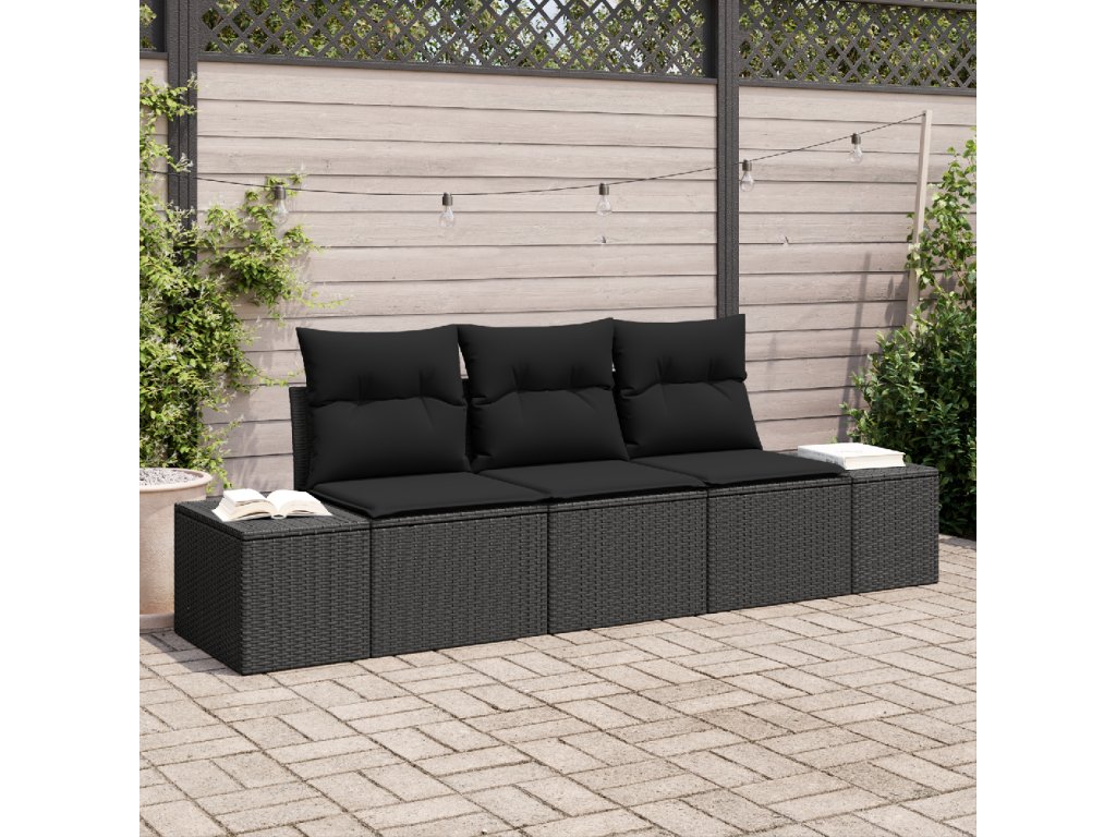 Sada zahradních pohovek s polštářem s úložištěm 3 pcs Černá