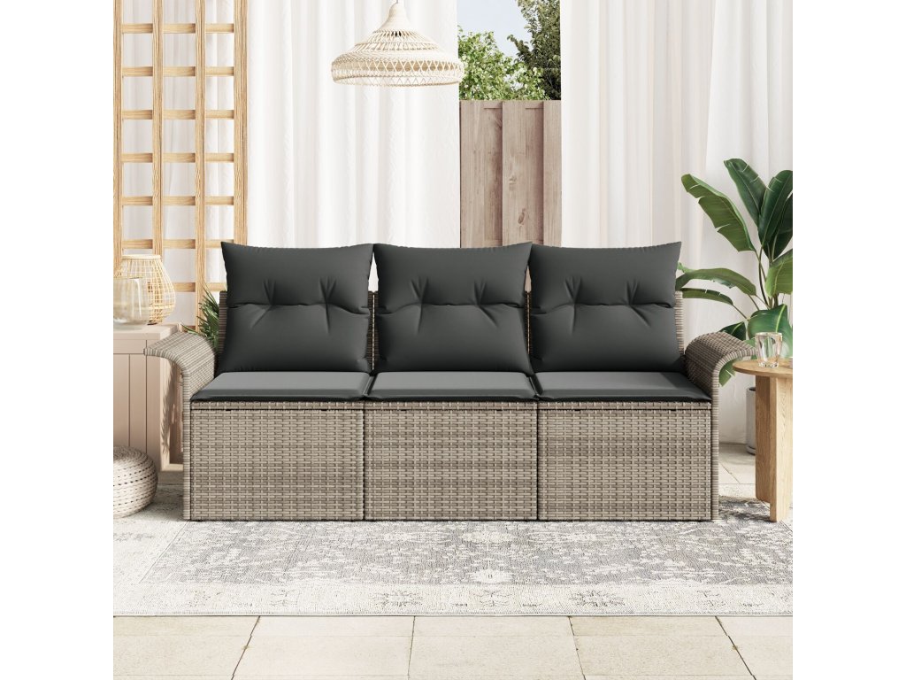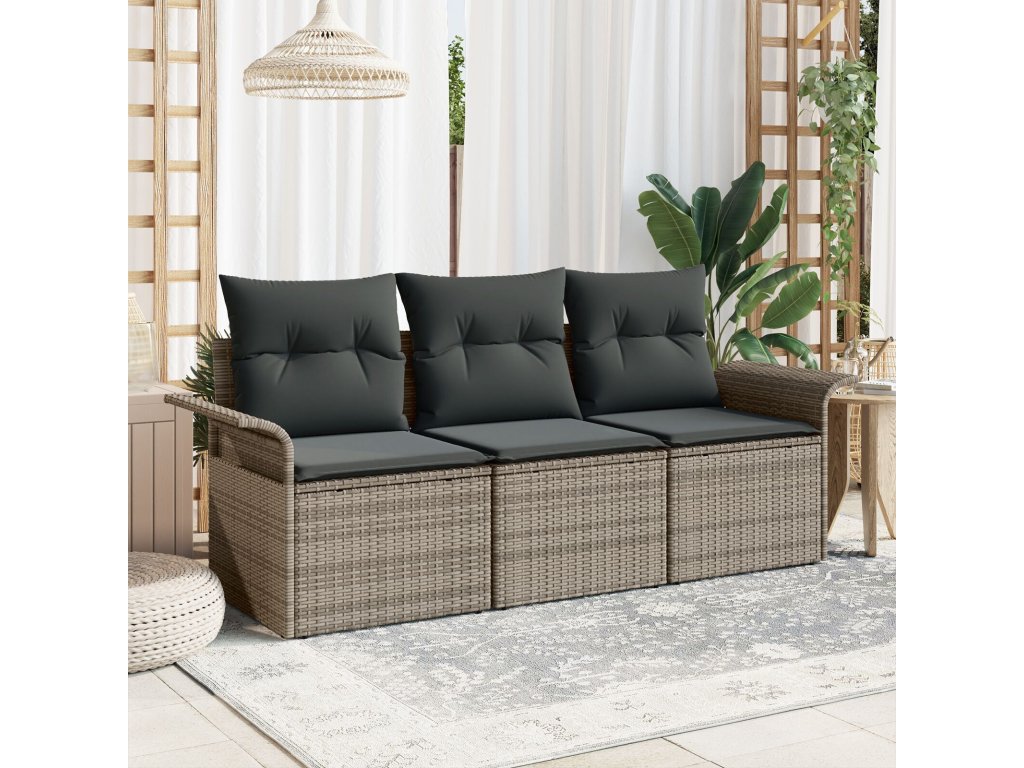 Set pohovek s polštářem 3 pcs Šedá polyratan