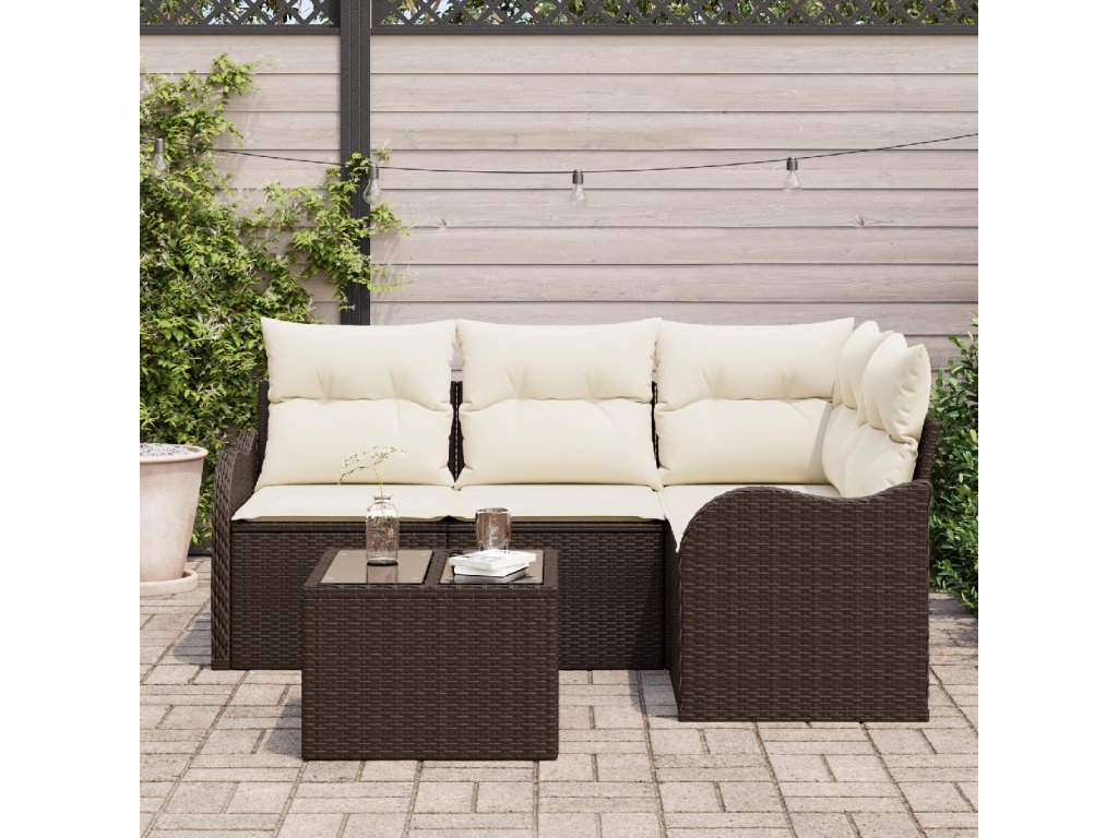 Odolné materiály: Konstrukce z kvalitního polyratanu a práškově lakované oceli zaručuje odolnost a dlouhou životnost. Materiály byly vybrány tak, aby zvládly venkovní podmínky a dlouho vypadaly dobře. Zakřivené opěrky rukou: Tento gauč má opěrky rukou vyrobené z polyratanu, které jsou pohodlné a stylové. Ergonomický design zajišťuje pohodlné sezení i dlouho na slunci. Modulární design: Flexibilita této soupravy ti umožňuje přizpůsobit uspořádání podle prostorových a estetických požadavků. Každý kus se snadno přeskupuje nebo rozšiřuje podle potřeby. Pohodlné prvky: S polyesterovými polštáři ti souprava nabízí měkké a pohodlné sezení. Polštáře mají odnímatelné a pratelné potahy, což usnadňuje údržbu. Praktická údržba: Souprava nevyžaduje moc péče; stačí ji otřít vlhkým hadříkem, aby zůstala v dobrém stavu. Používej venkovní kryt, když nábytek nepoužíváš, abys prodloužil jeho životnost.- Barva: Hnědá