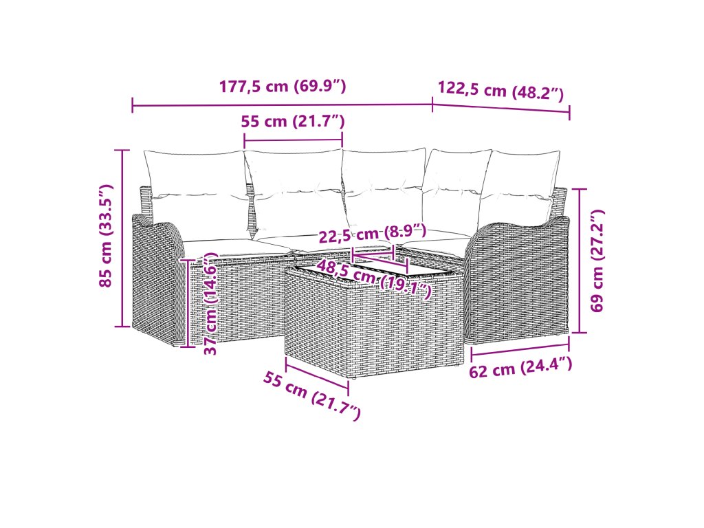 - 4 x sedací polštář: 55 x 55 cm (D x Š)