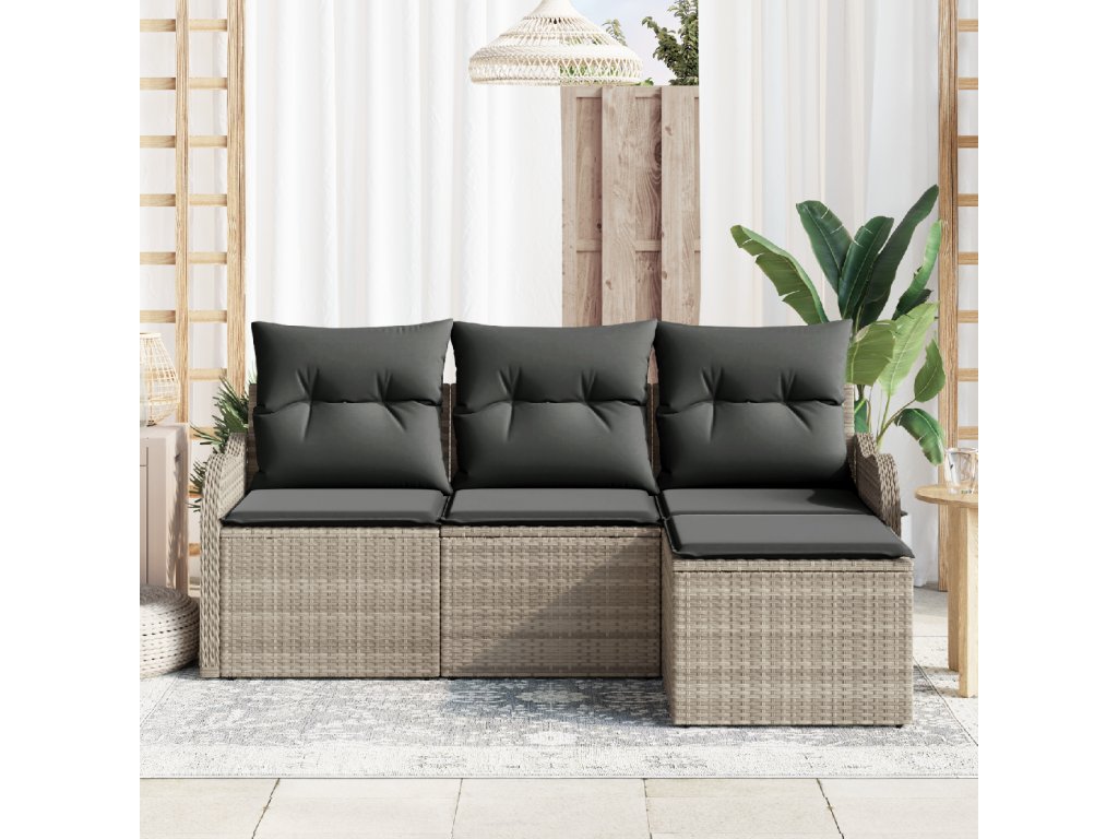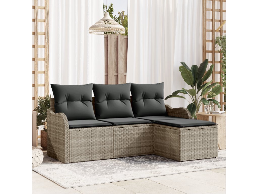 Sada zahradních pohovek 4 pcs Světle šedá Poly ratan
