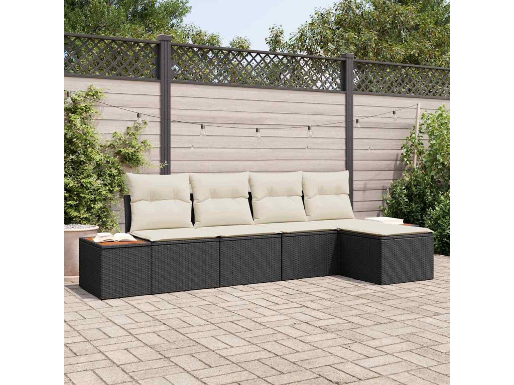 Sada zahradních pohovek 5 pcs Černá a krémová Poly Ratan