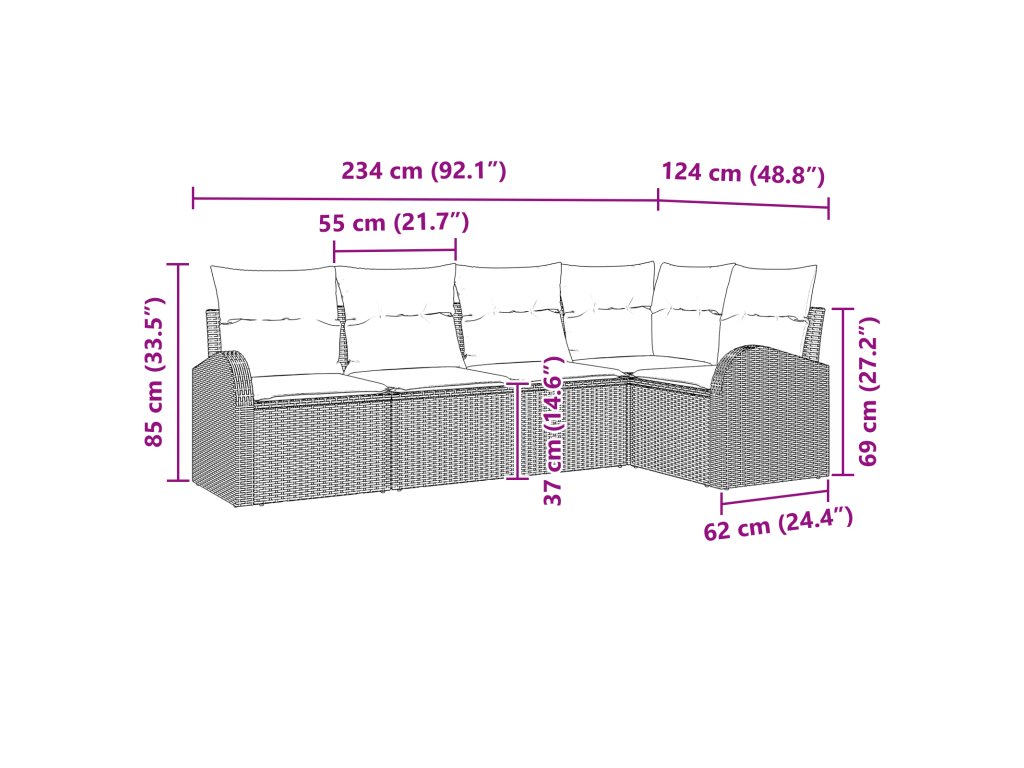Tento stylový zahradní pohovkový set představuje moderní jednoduchost s důrazem na funkčnost. Je perfektní pro vylepšení vašeho venkovního prostoru a nabízí jak styl, tak užitečnost pro shromáždění nebo klidné chvíle relaxace. Jeho čisté linie a tkaná textura dodávají terasám, patiu nebo zahradám šik nádech a poskytují pohodlné prostředí pro jakoukoli příležitost.