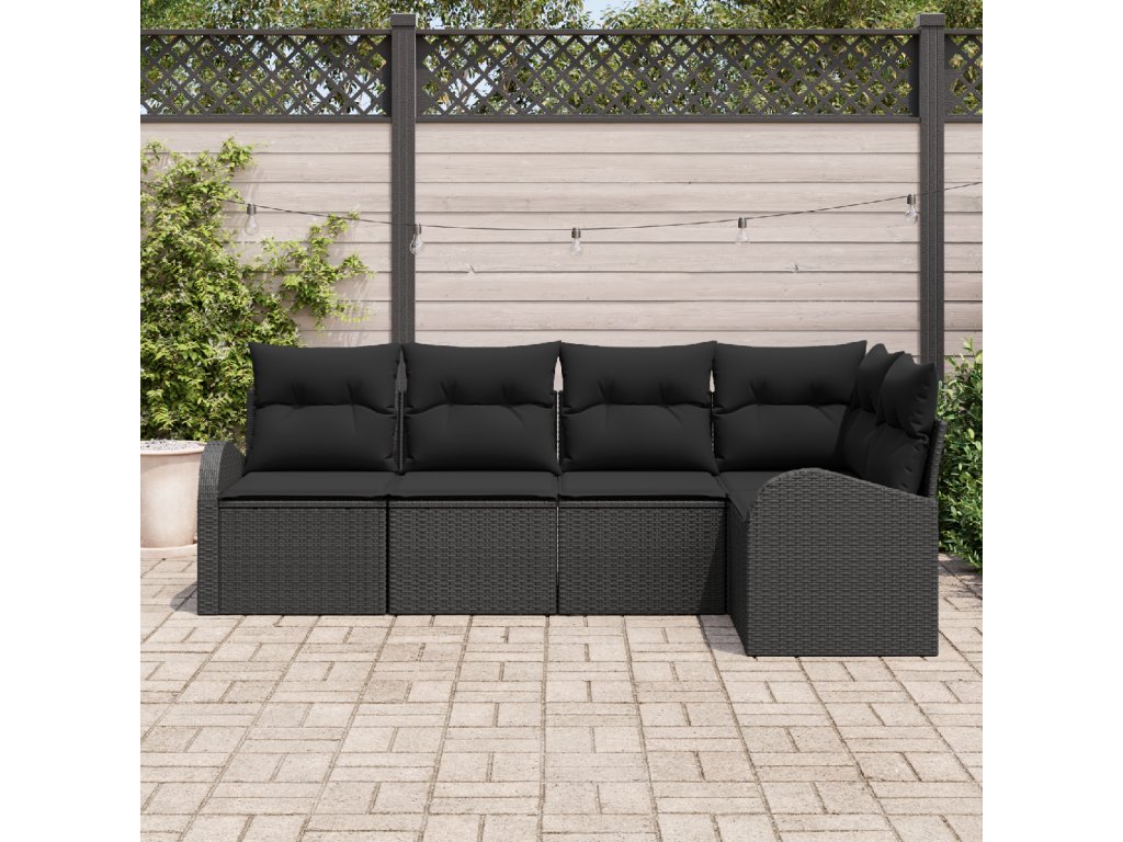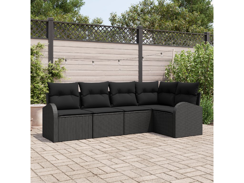Set pohovek s polštářem s úložištěm 5 pcs Černá polyratan