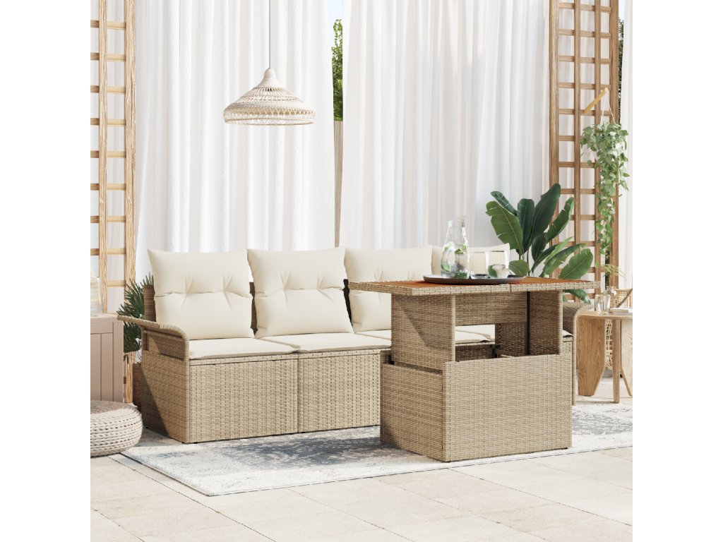 Složení materiálu: Modulární zahradní sofa set spojuje odolný poly ratan a masivní akáciové dřevo, což vytváří skvélé spojení síly a elegance. Poly ratan je známý svou trvanlivostí a odolností proti počasí, což ho činí tou pravou volbou na venkovní použití. Povrch z akáciového dřeva dodává teplo a vizuální přitažlivost. Funkčnost a pohodlí: Zahradní sofa má promyšlený design s odnímatelnými polštáři na sedák, které se zapínají na zip. Plněné polyesterovým vláknem, polštáře nabízejí lehkou a pohodlnou oporu. Zakřivené opěrky rukou vybízejí k odpočinku, což zvyšuje pohodlí při dlouhém relaxování v létě. Univerzálnost stolu: Tento nábytek zahrnuje výškově nastavitelný stůl, který snadno převedete z kávového stolu na jídelní stůl, čímž poskytuje flexibilitu pro různé příležitosti. Tato funkce usnadňuje plynulý přechod od skvělých čajových setkání po rodinné obědy. Ochrana před počasím: Díky UV-odolným materiálům, set bez problémů odolává venkovním vlivům a uchovává si tvar a barvu i na přímém slunci. Jeho počasí odolná konstrukce zajišťuje spolehlivý výkon během jarního a letního období, což je klíčové pro milovníky venkovní zábavy. Praktické použití a údržba: Snadně montovatelný, vyžaduje dvě osoby a šroubovák, aby byla instalace jednoduchá. Abyste ochránili své investice, nezapomeňte použít kryt, když ho nepoužíváte, čímž mu zabezpečíte dobrý stav na delší dobu.- Barva: Béžová a krémová