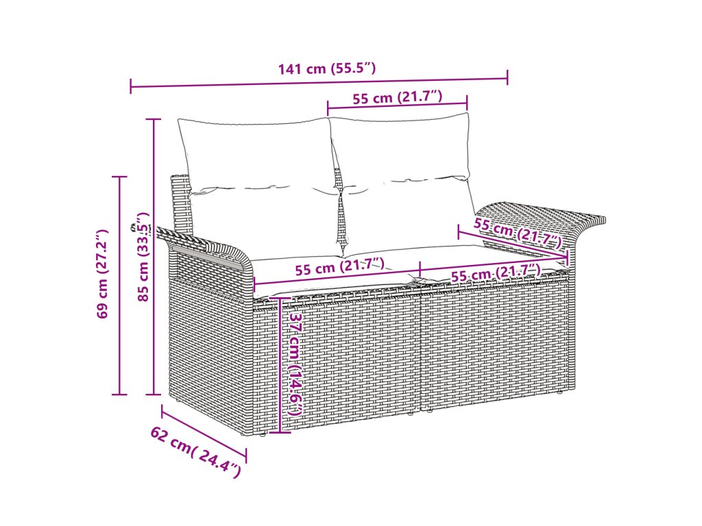 - Funkčnost a pohodlí: Zahradní sofa má promyšlený design s odnímatelnými polštáři na sedák, které se zapínají na zip. Plněné polyesterovým vláknem, polštáře nabízejí lehkou a pohodlnou oporu. Zakřivené opěrky rukou vybízejí k odpočinku, což zvyšuje pohodlí při dlouhém relaxování v létě.
