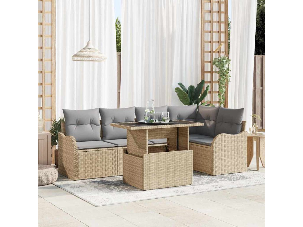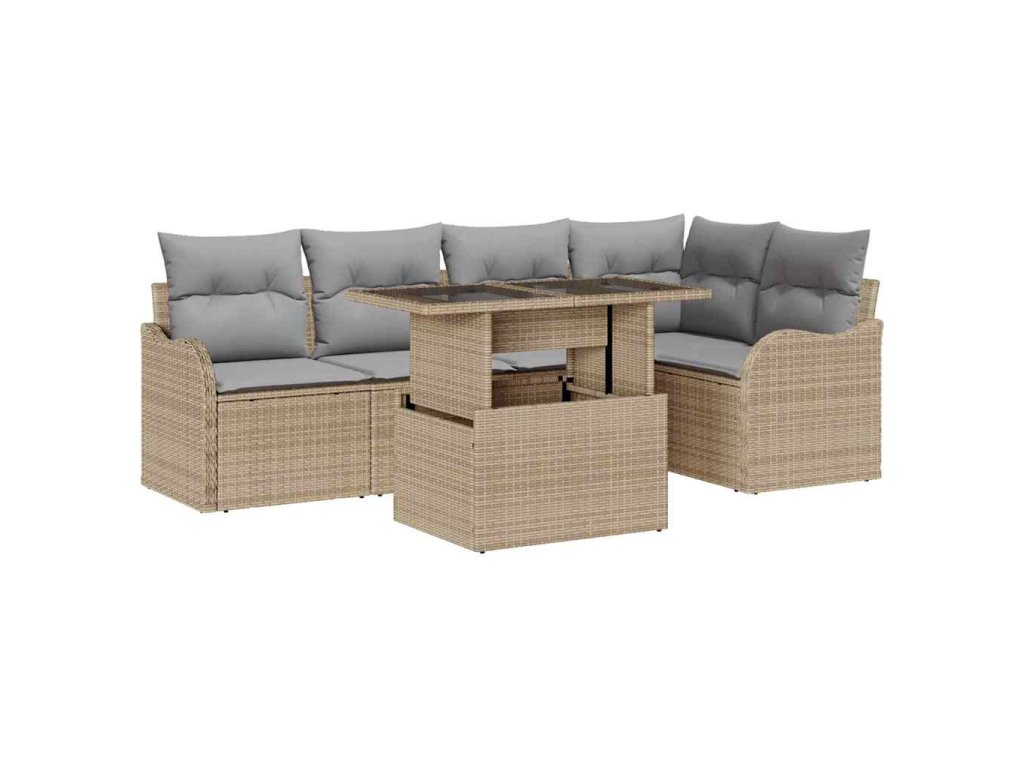 Sada zahradních pohovek s polštářem 6 pcs Béžová Poly Ratan