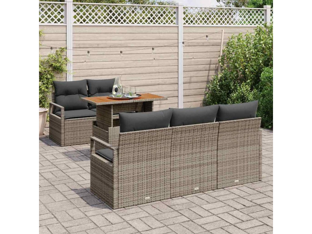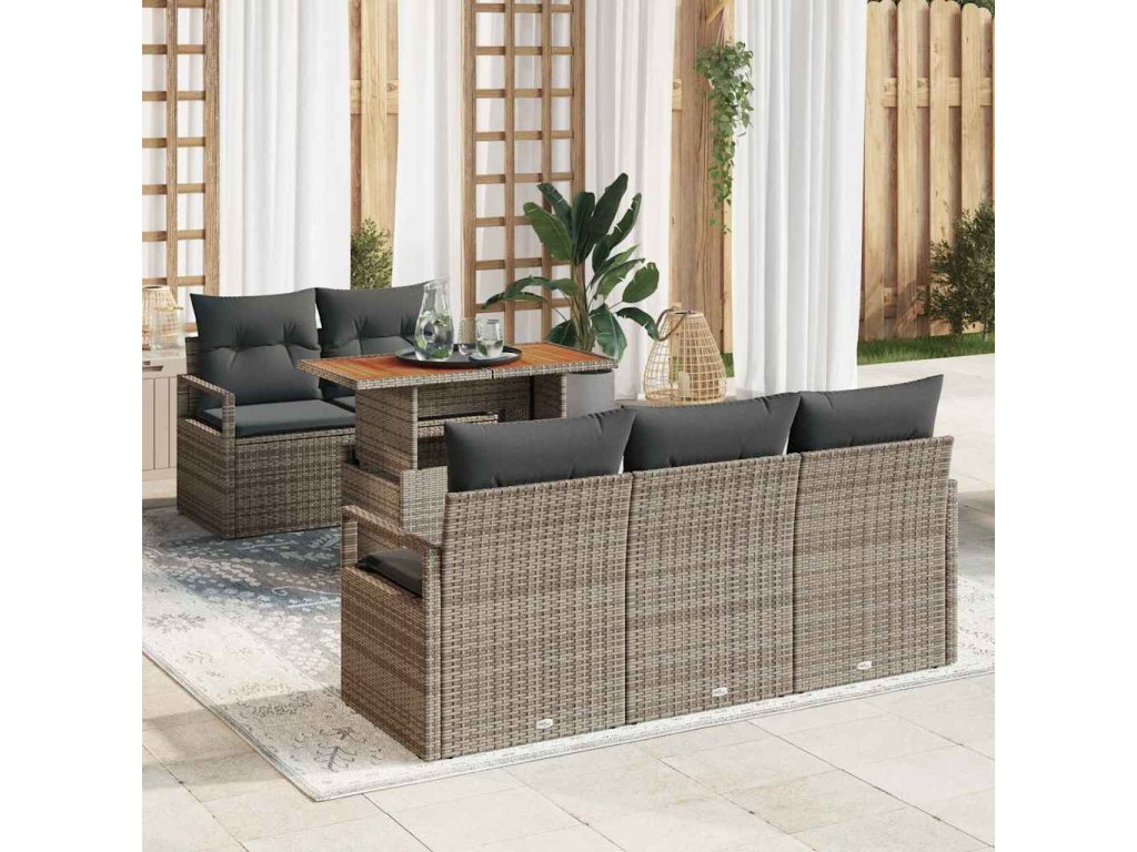 Sada zahradních pohovek s úložištěm 6 pcs Šedá Poly ratan