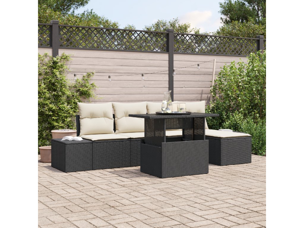 Sada zahradních pohovek 6 pcs Černá a krémová polyratan