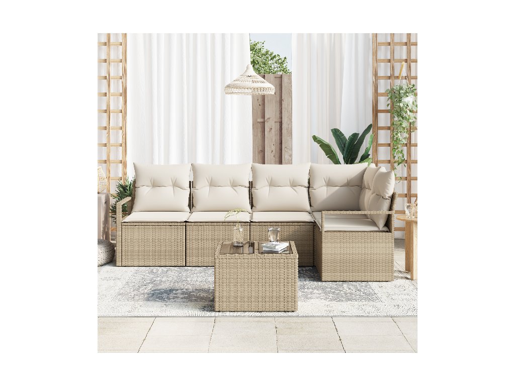 Sada zahradních pohovek s polštářem 6 pcs Béžová a krémová