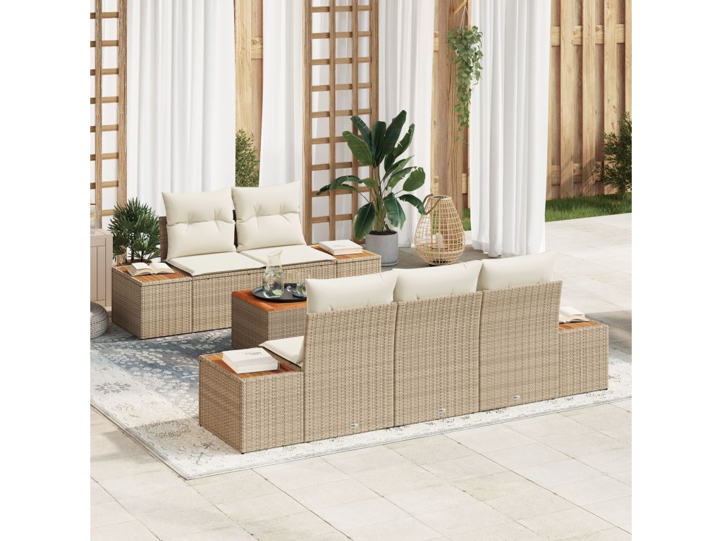 Sada zahradních pohovek s polštářem 6 pcs Béžová Poly ratan