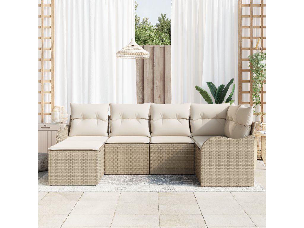Sada zahradních pohovek 6 pcs Béžovo-bílá Poly ratan