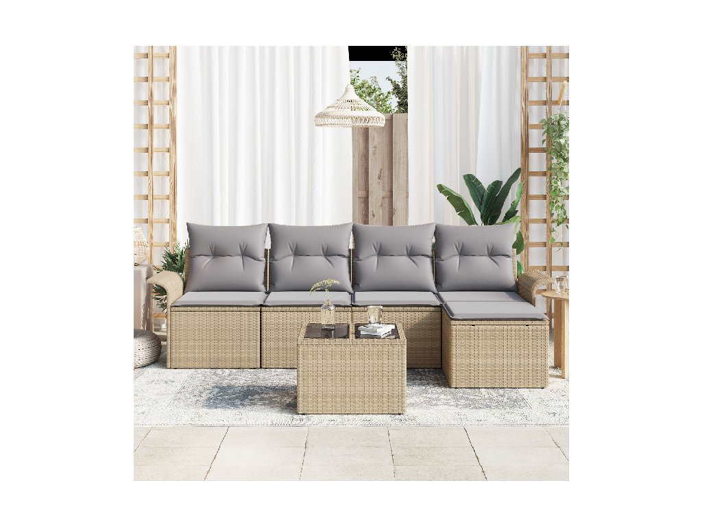 Sada zahradních pohovek s polštářem 6 pcs Béžová polyratan