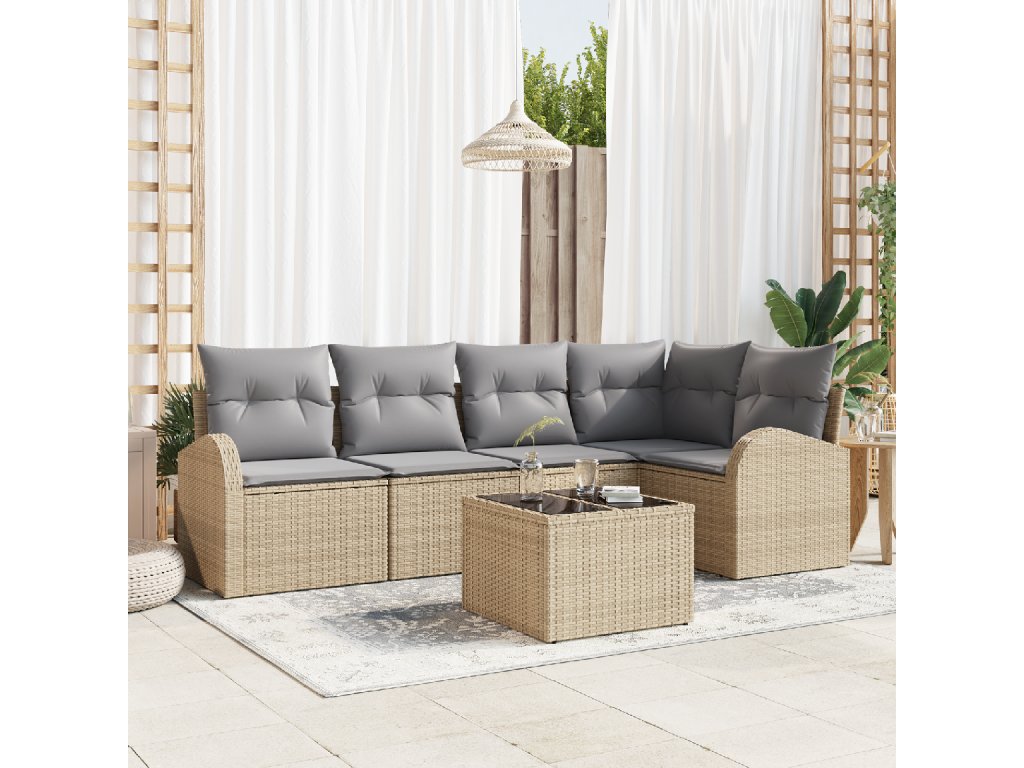 Sada zahradních pohovek 6 pcs béžová a světle šedá Poly ratan