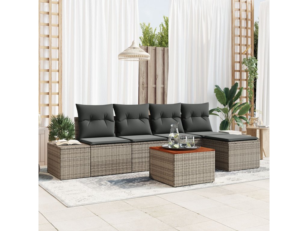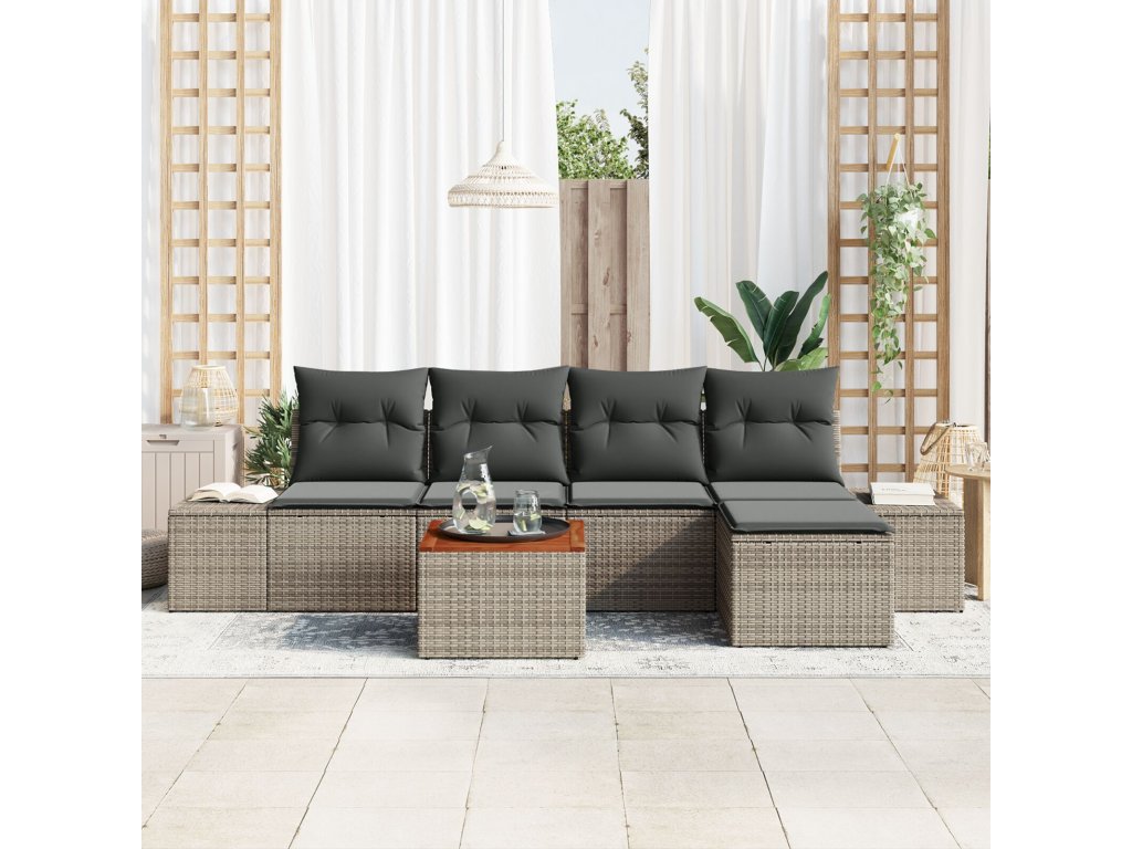 Sada zahradních pohovek s polštářem 6 pcs Šedá Poly ratan