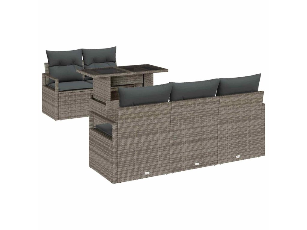 Sada zahradních pohovek s polštářem 6 pcs Šedá Poly ratan