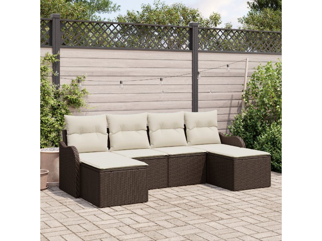 Sada zahradních pohovek 6 pcs Hnědá a bílá Poly ratan