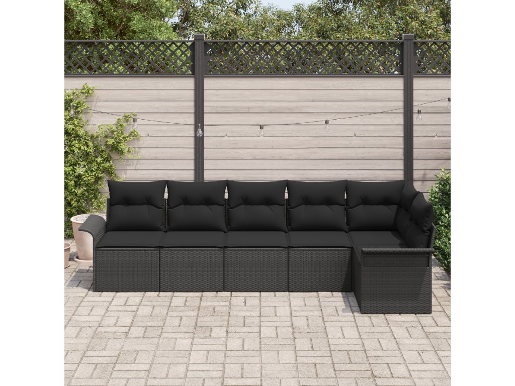 Sada zahradních pohovek s polštářem 6 pcs Černá Poly ratan