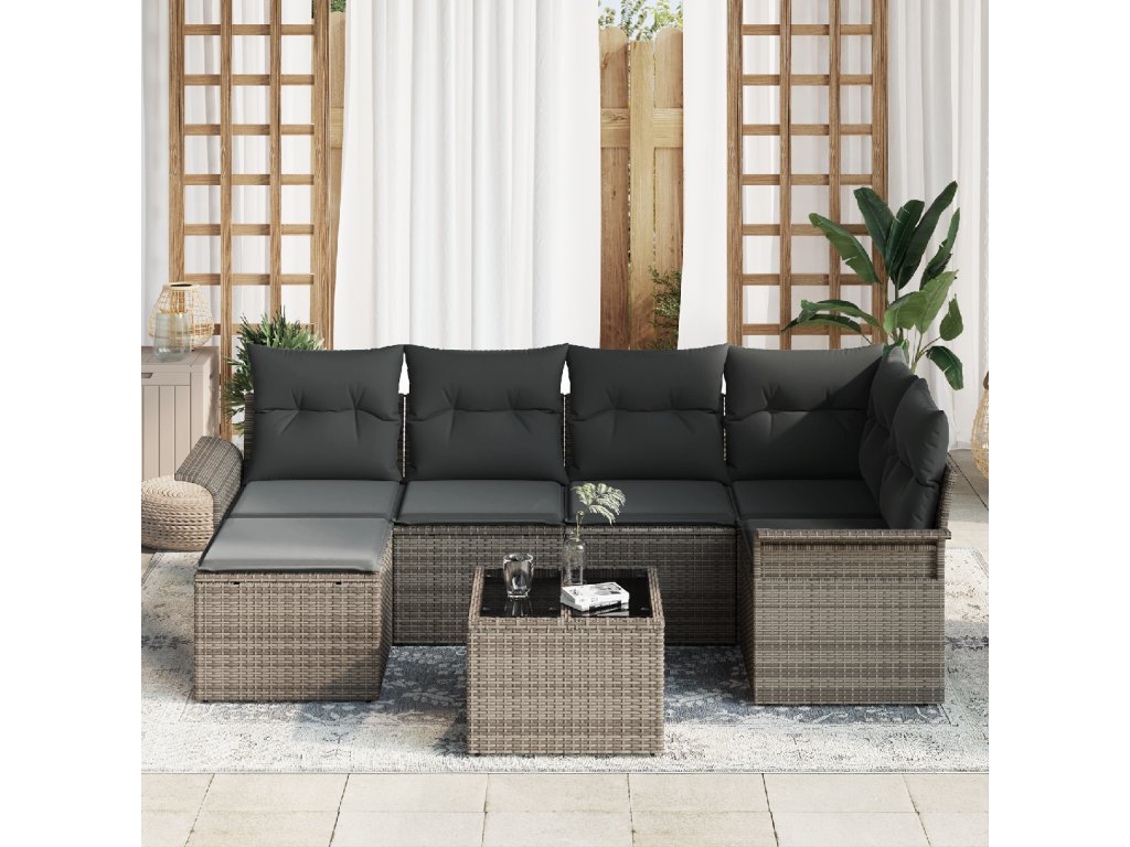 Sada zahradních pohovek s úložištěm 7 pcs Šedá polyratan