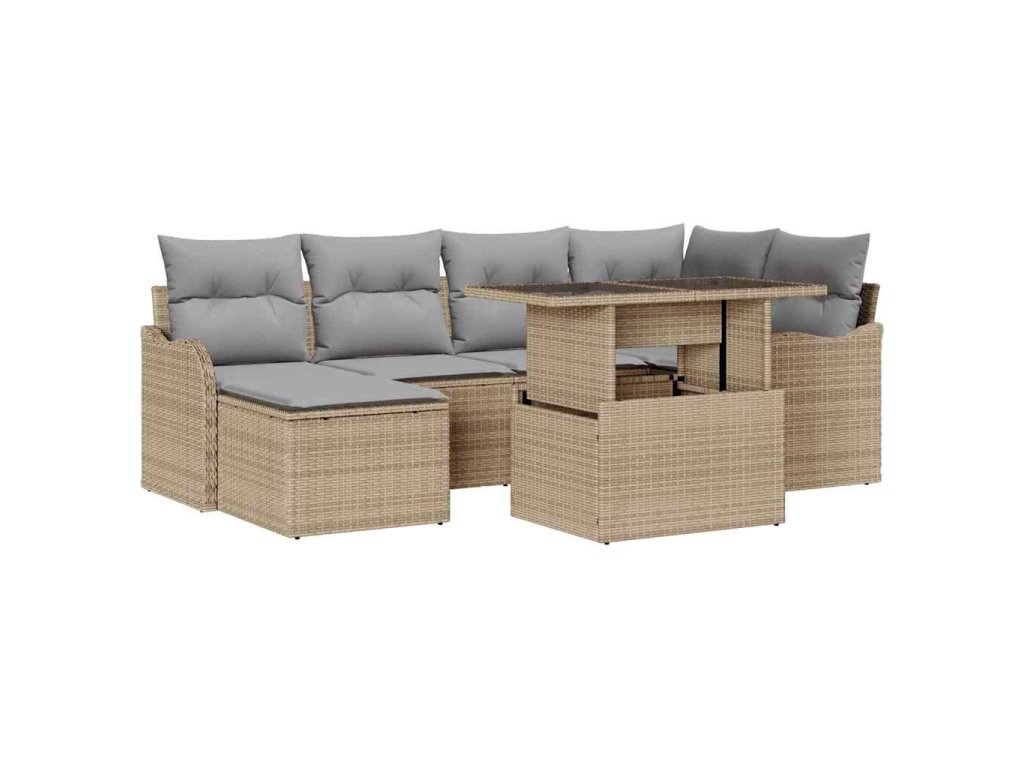 Sada zahradních pohovek s polštářem 7 pcs Béžová Poly ratan