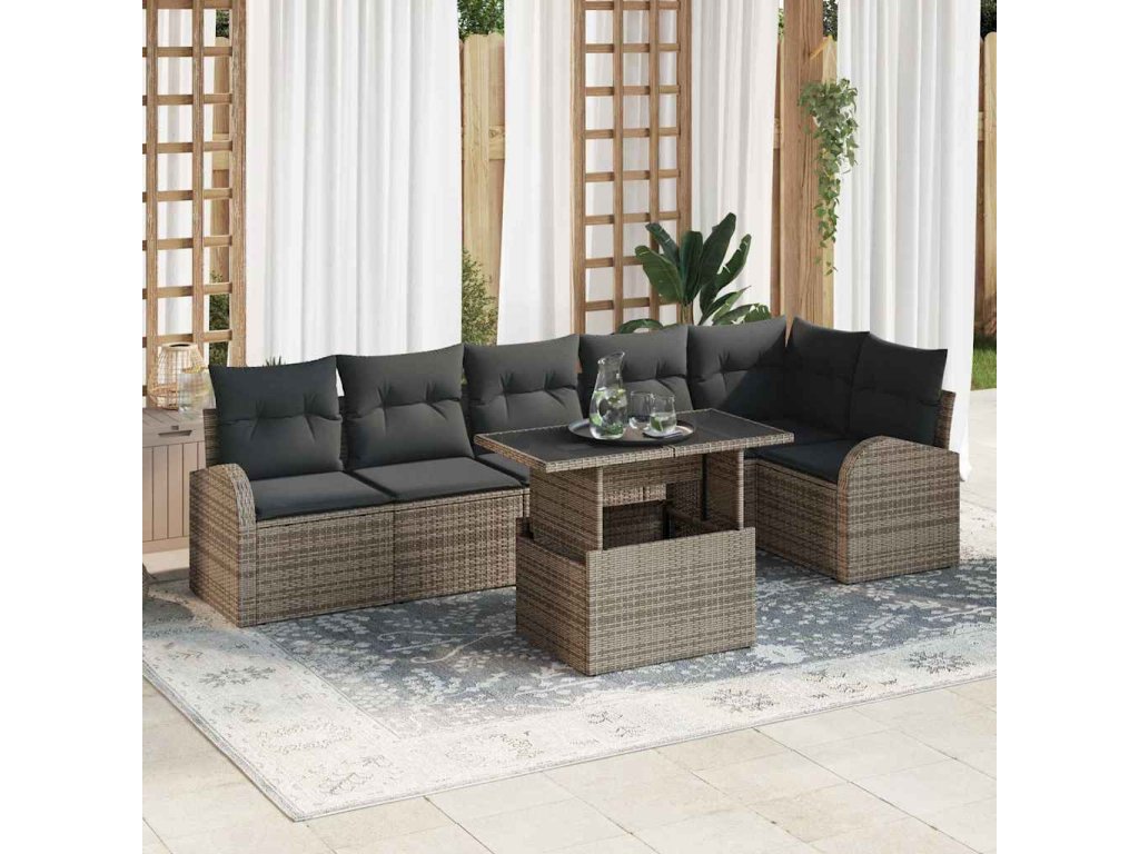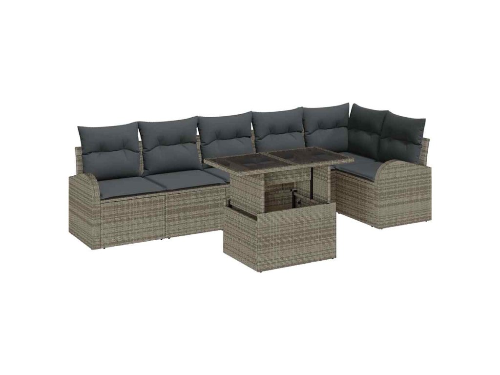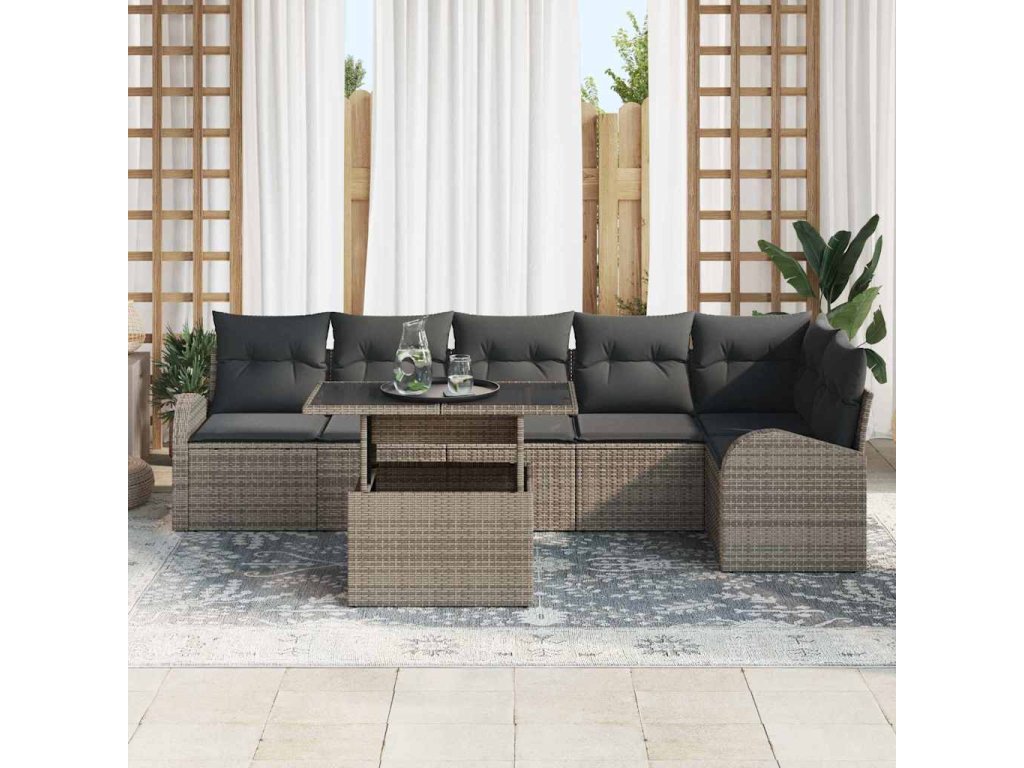 Sada zahradních pohovek s polštářem 7 pcs Šedá Poly ratan