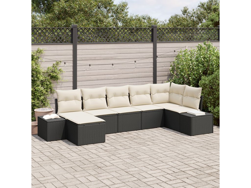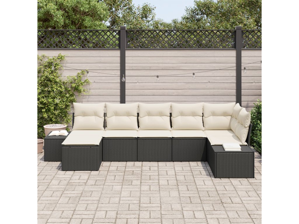 Sada zahradních pohovek s polštářem 7 pcs Černá polyratan