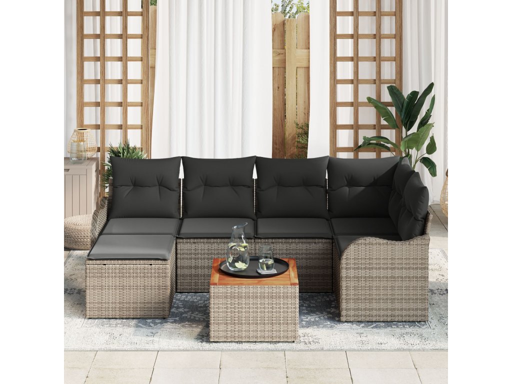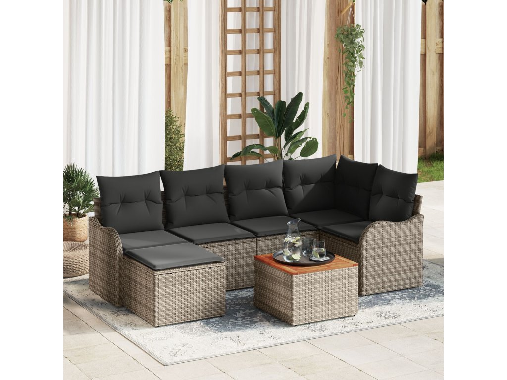 Sada zahradních pohovek 7 pcs Šedá Poly ratan