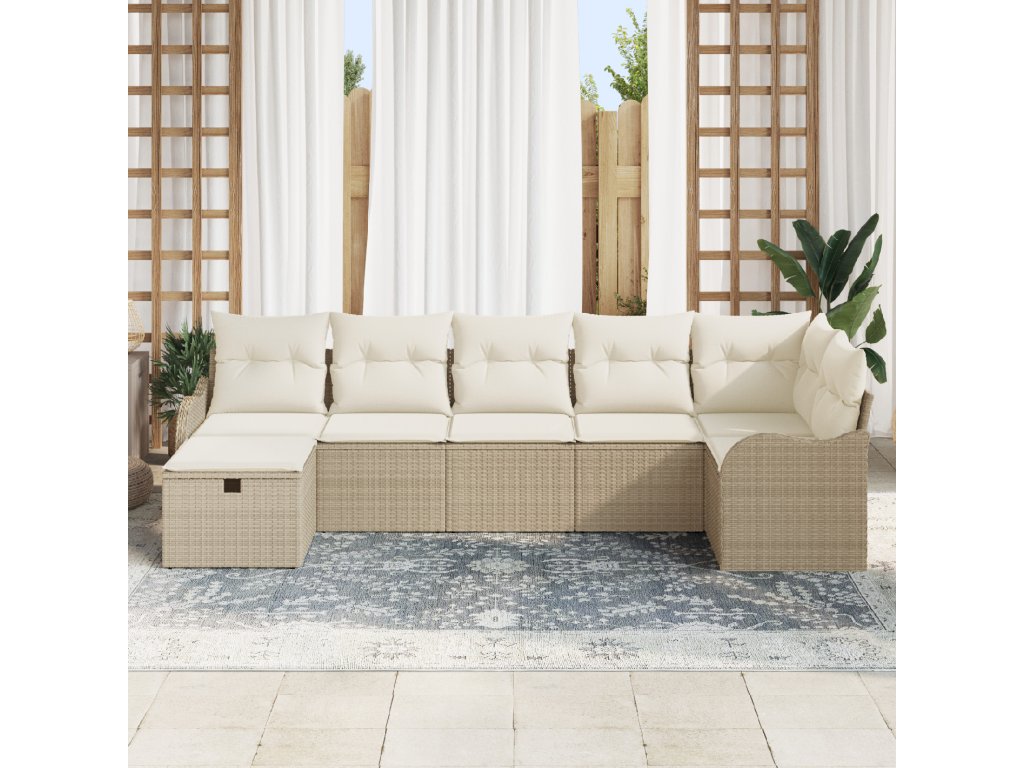 Set pohovek s polštářem s úložištěm Béžová a krémová polyratan