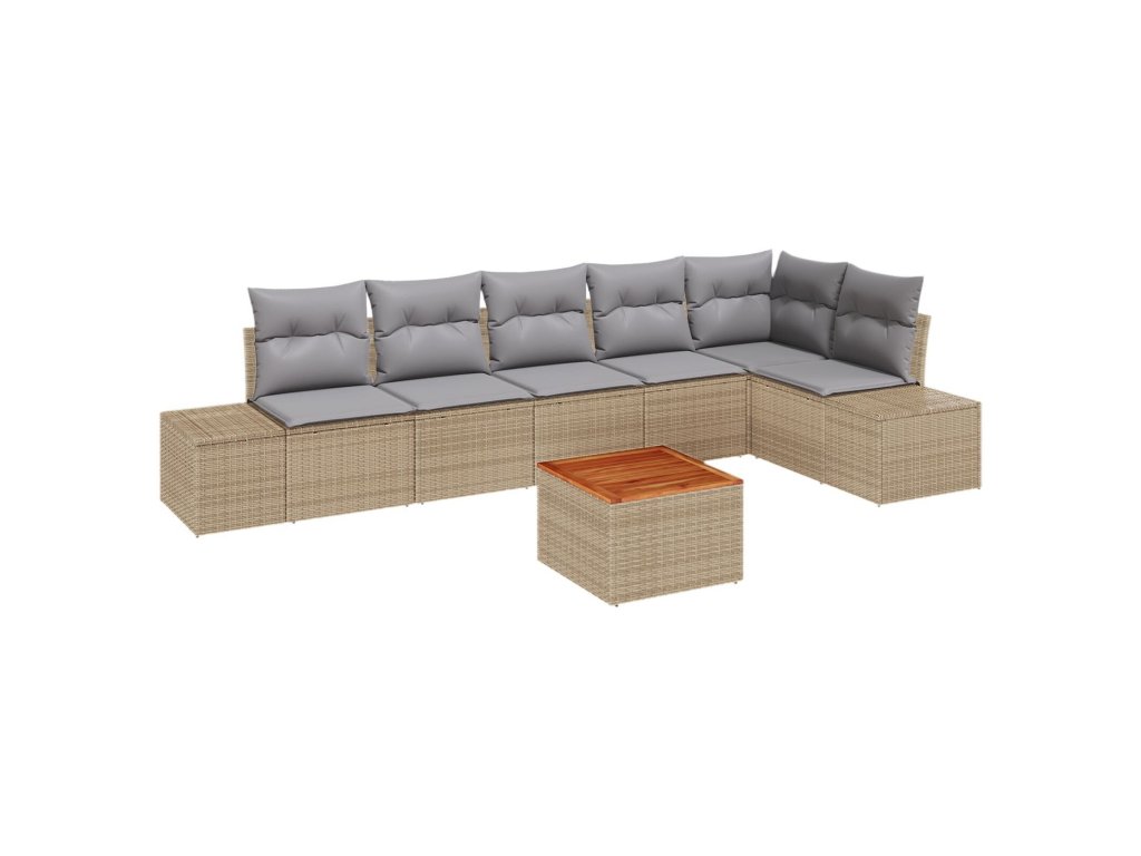 Sada zahradních pohovek s polštářem 7 pcs Béžová Poly ratan