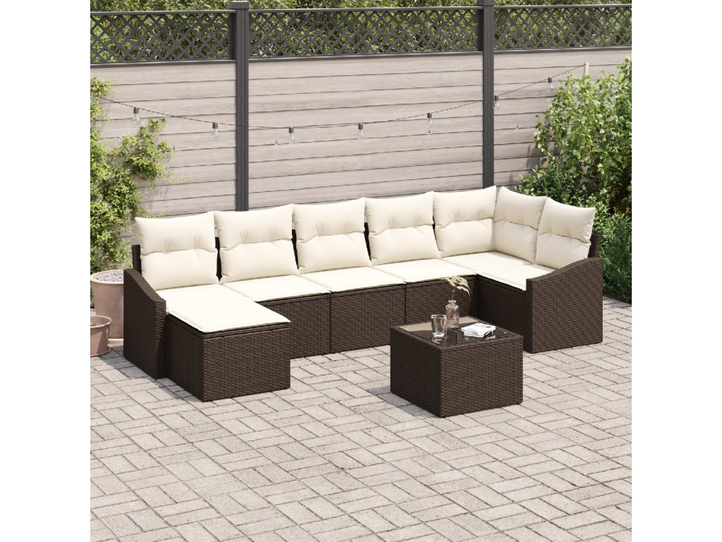 Sada zahradních pohovek 8 pcs Hnědá a krémová polyratan