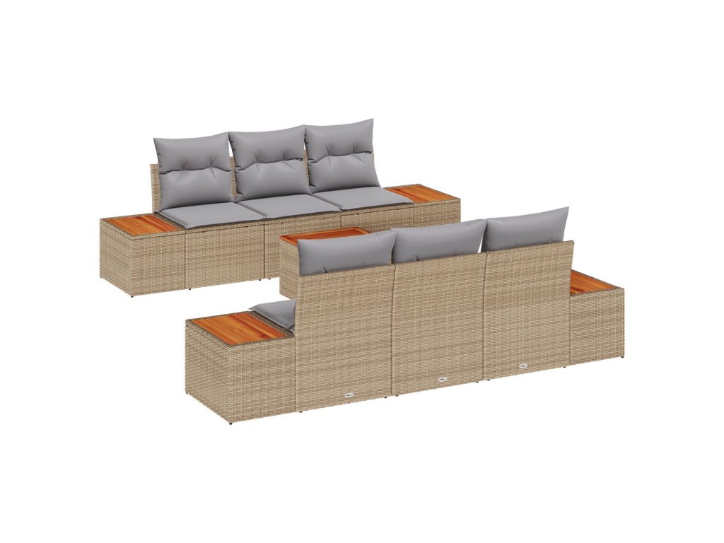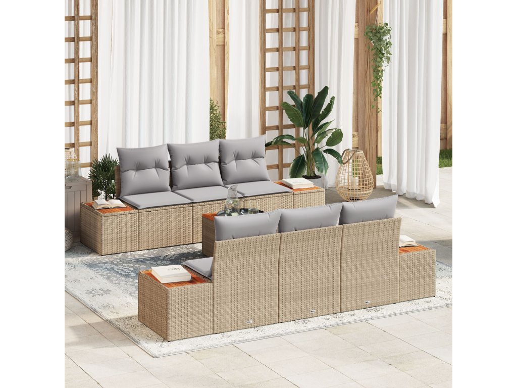 Sada zahradních pohovek s polštářem 7 pcs Béžová Poly ratan