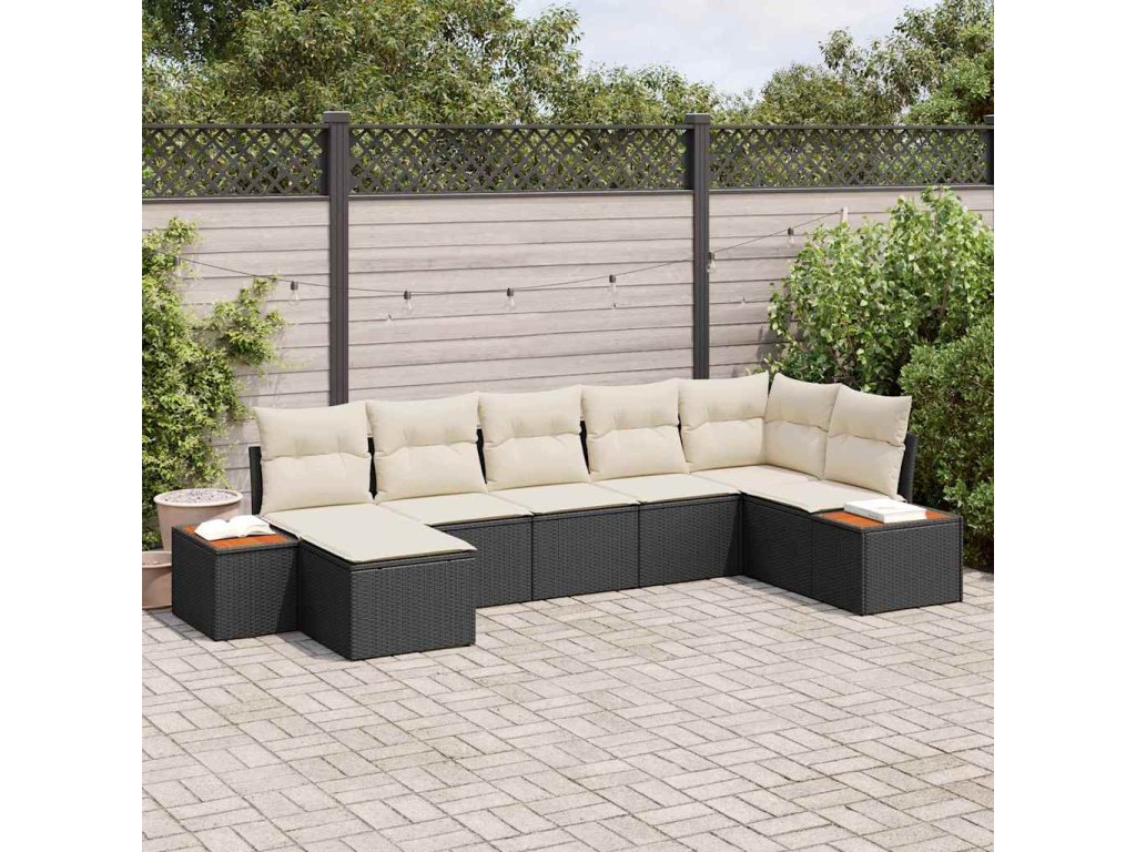 Sada zahradních pohovek 7 pcs Černá a krémová Poly Ratan