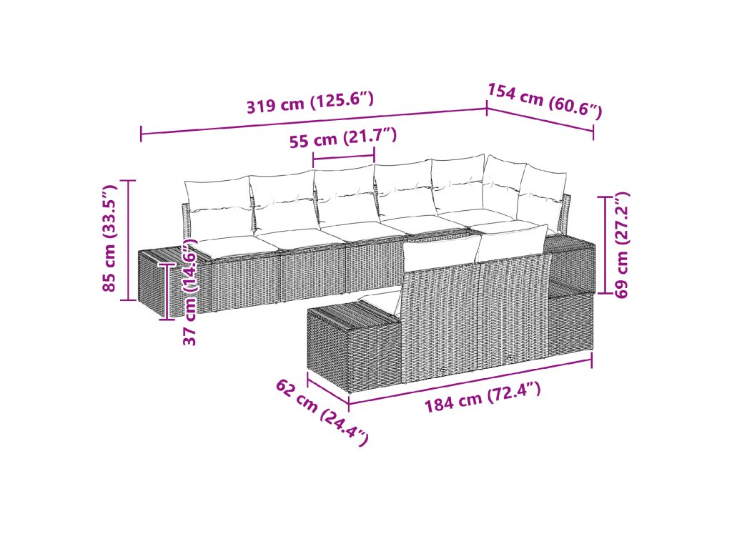 Tato sada zahradních pohovek s polštáři představuje moderní sofistikovanost a funkční design, který skvěle zapadne do vašich venkovních prostor. S atraktivním modulárním designem a kvalitními materiály nabízí flexibilitu, aniž byste museli obětovat styl nebo pohodlí. Ať už se opalujete nebo pořádáte zahradní párty, její elegantní textura upoutá pozornost. Představte si, jak relaxujete na měkkých polštářích obklopeni přírodou a užíváte si čas s blízkými v této krásné oáze.